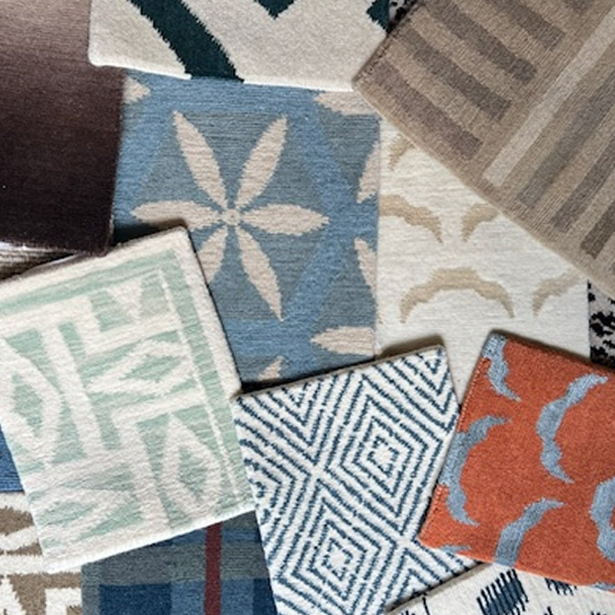 At the time, the mills were producing very traditional patterns. Moved by the quiet elegance of the weavers’ work, the history of their process, and the integrity woven into every piece, she sent paint chips back to Kathmandu, along with sketches and watercolors. The artisans created a new interpretation of their craft, blending the linear simplicity of Scandinavian design with modern aesthetics, the hand-knotted process's richness, and the Himalayan wool's complex luster.